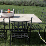 Disponibile in diverse misure per adattarsi alle strutture in ferro dei nostri modelli, è perfetto per creare una zona pranzo raffinata e resistente alle intemperie. La superficie levigata e bordata con finitura classica esalta il valore estetico del travertino, mantenendo la funzionalità richiesta per l’uso quotidiano all’aperto.